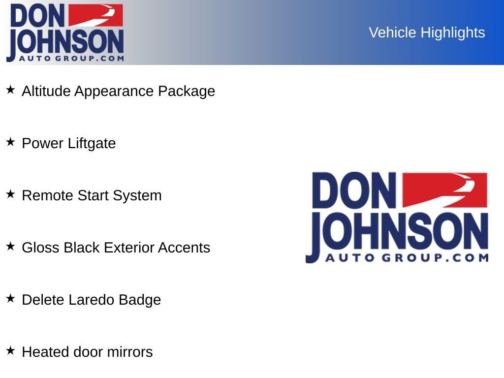 The Altitude Appearance Package and Quick Order Package 23B add a touch of sophistication, with features like a Gloss Black exterior, Heated Front Seats, a Heated Steering Wheel, and a Power Liftgate. The Wireless Charging Pad, Selectable Tire Fill Alert, and 3rd Row Charge-Only USB Ports ensure your connected devices stay powered, while the Blind-Spot Monitoring and Backup Camera provide added peace of mind on the road.