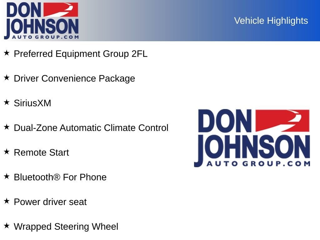 - Driver Convenience Package includes (BTV) Remote Start, (CJ2) dual-zone automatic climate control, (KA1) driver and front passenger heated seats, (N5F) wrapped steering wheel and (TB5) power liftgate.